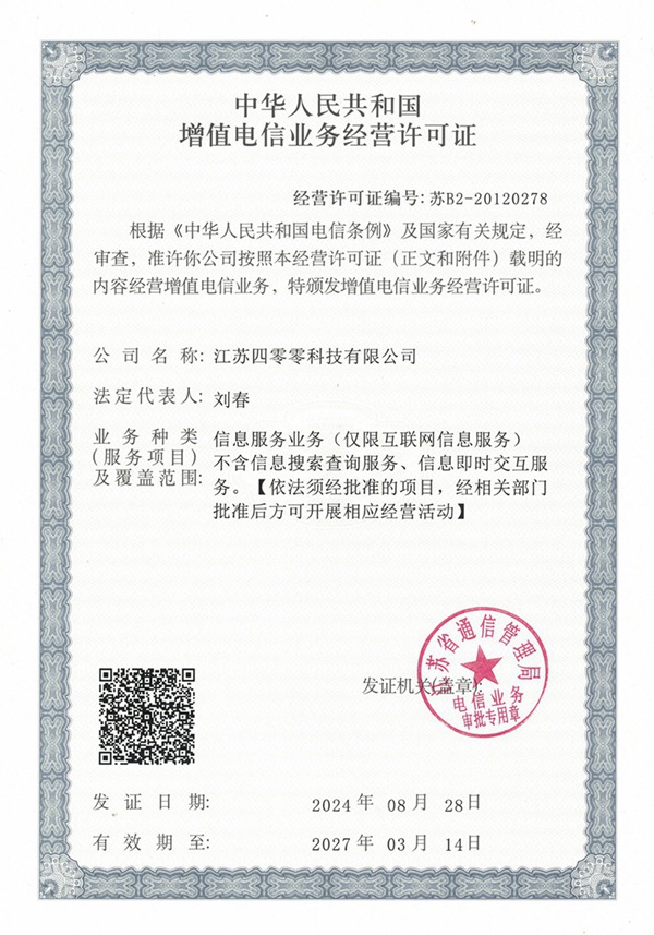 2010年正式成立公司,2024年更名为江苏四零零科技有限公司。我们始终专注于400电话领域,累计服务企业客户数万家,覆盖电商、教育、制造、餐饮、物流等主要行业,致力于成为企业通信基础设施领域值得信赖的专家伙伴。